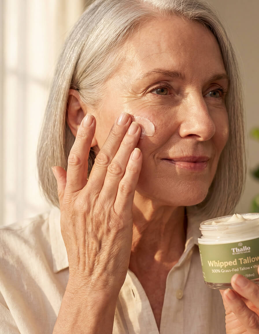 Inspired by the Greek goddess of new growth, Thallo is a brand built on rebirth. We source ancestral ingredients like tallow, sea moss, and mucin — and formulate them with modern intention. The result? Skincare that feels like coming home to your skin.